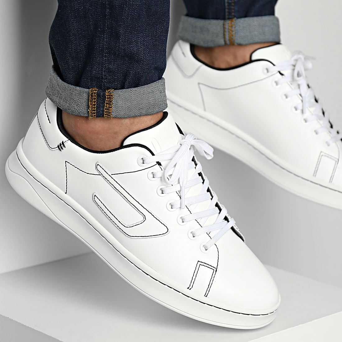 • Baskets tendance en cuir véritable avec logo Diesel latéral