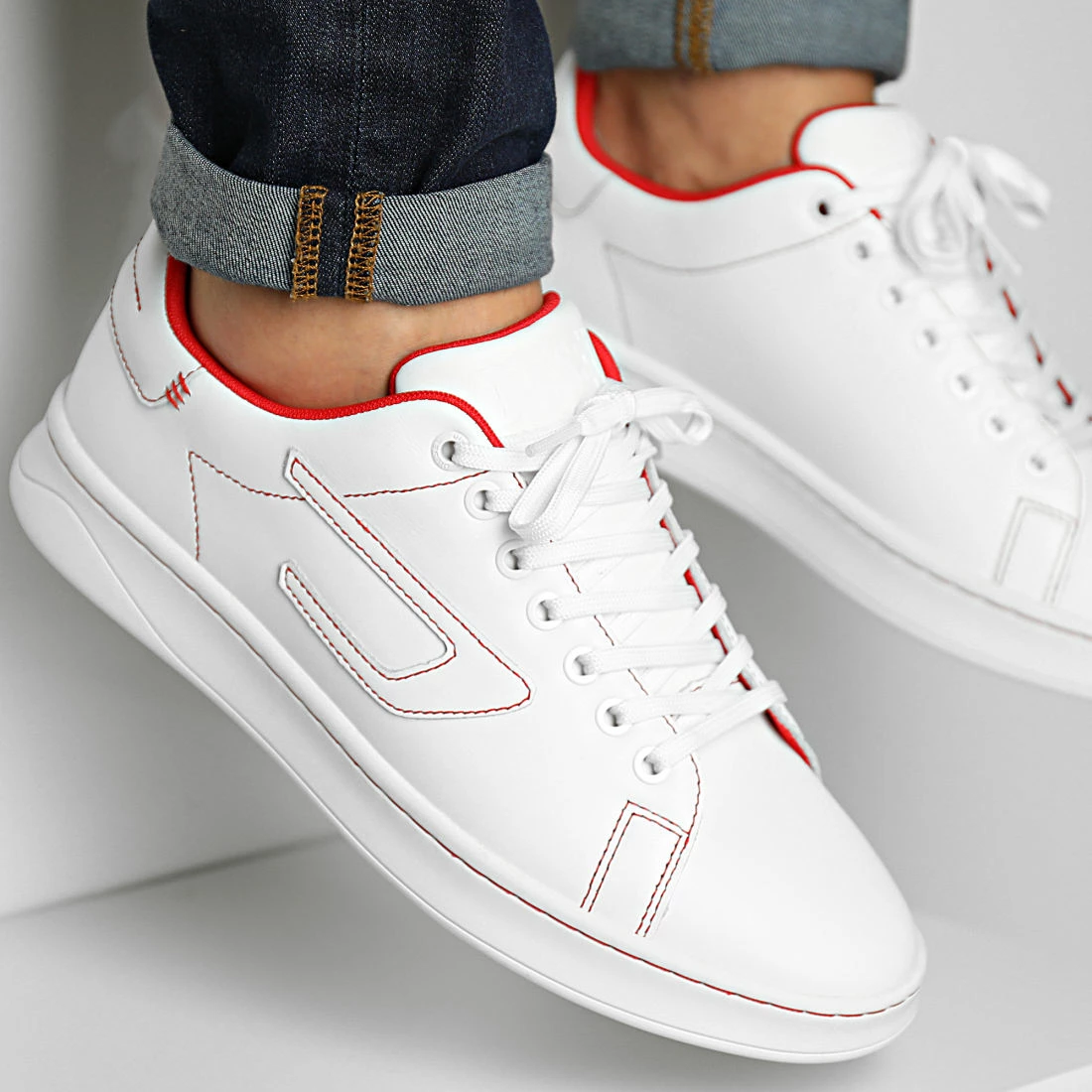 • Baskets tendance en cuir véritable avec logo Diesel latéral