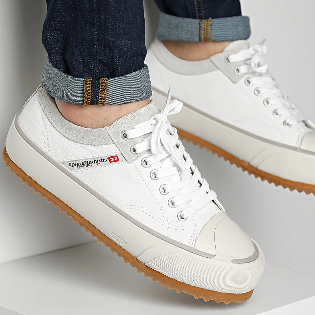 • Patch Diesel en cuir retourné sur la languette