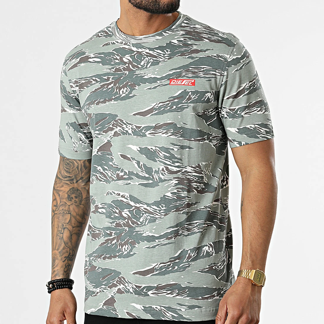 • Tee shirt imprimé visuel Diesel sur la poitrine et motif camouflage all over